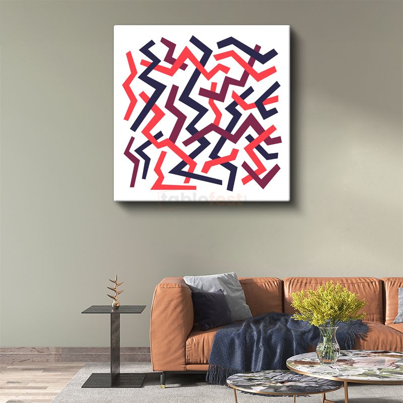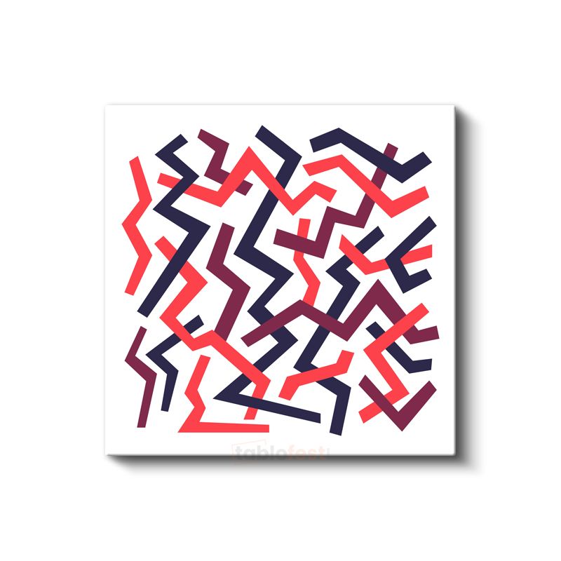 Geometrik Labirent - Modern Kırmızı Lacivert Çizgiler Soyut Kompozisyon Kanvas Tablo