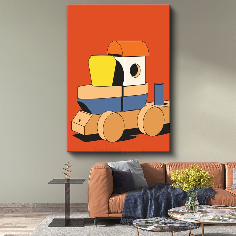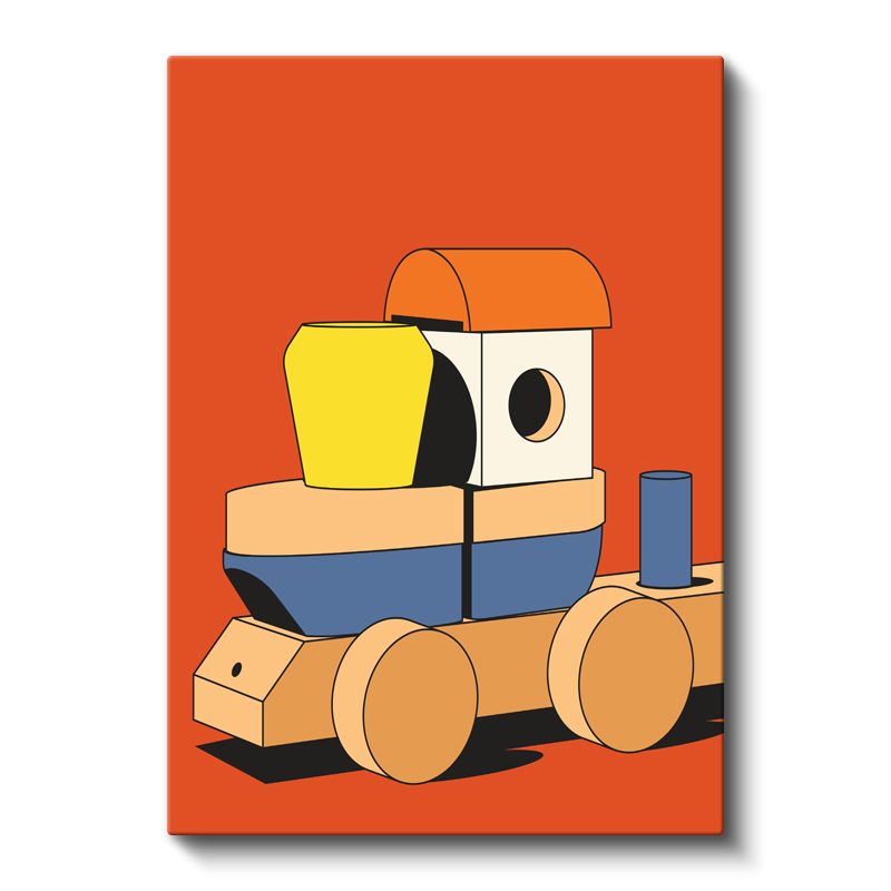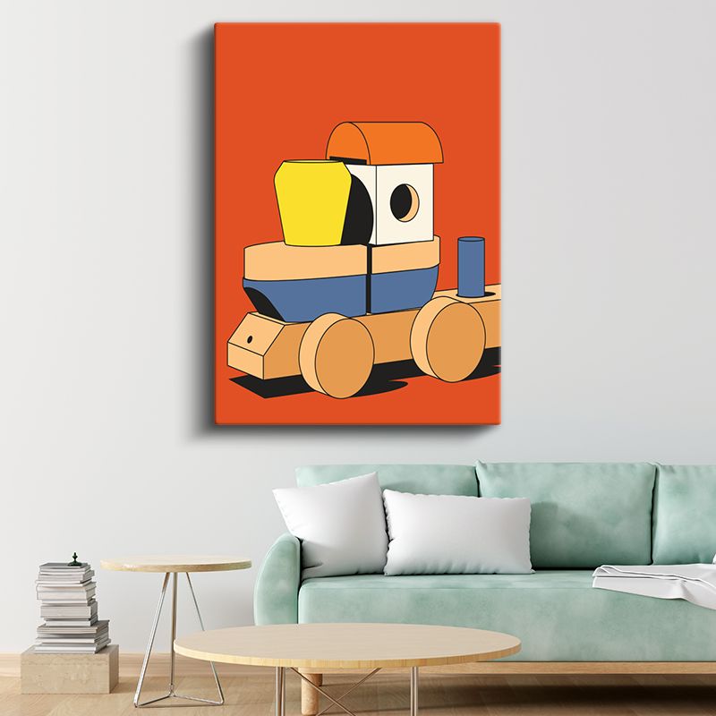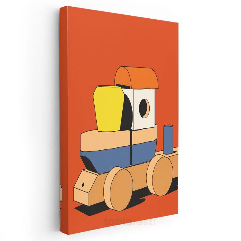Geometrik Lokomotif - Minimalist Çocukluk Anıları Kanvas Tablo