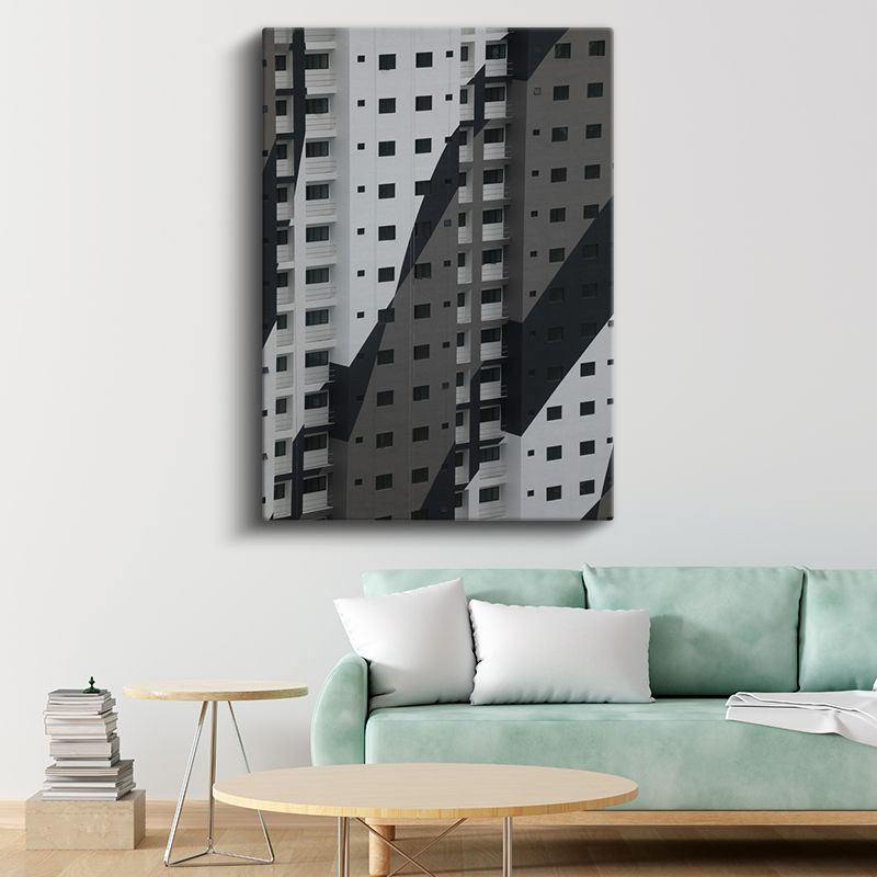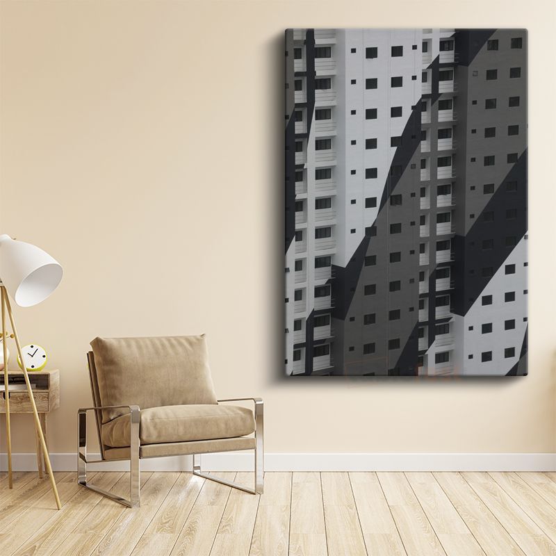 Geometrik Mimari - Siyah Beyaz Şehir Desenleri Kanvas Tablo
