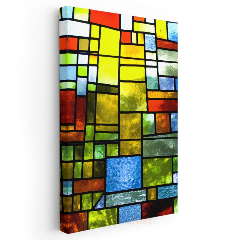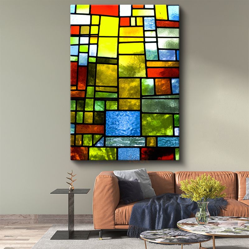 Geometrik Mozaik - Canlı Renkli Vitray Desenli Soyut Kanvas Tablo