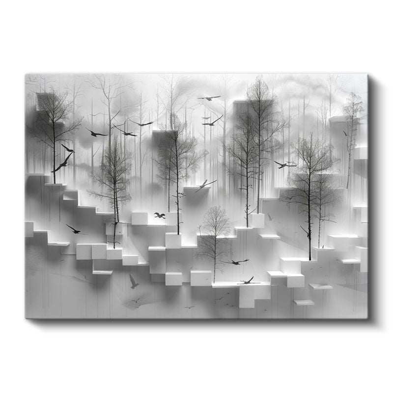 Geometrik Orman - Minimalist 3D Küpler ve Ağaçlar Kanvas Tablo