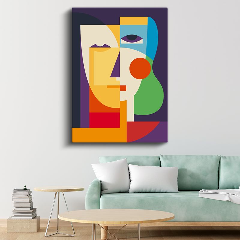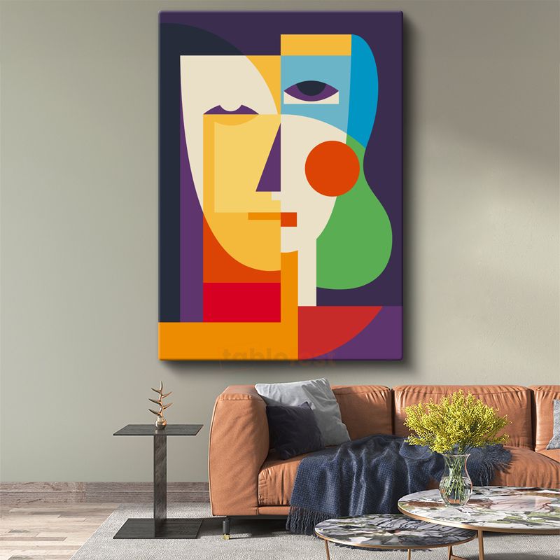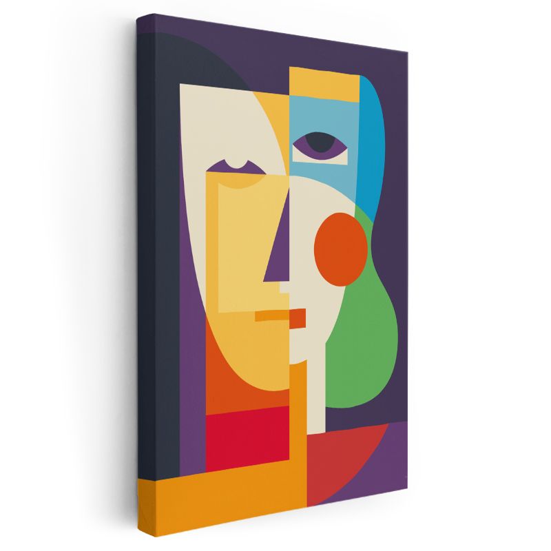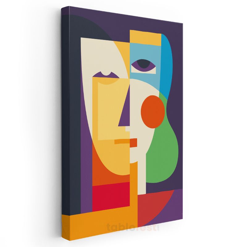 Geometrik Portre - Çok Renkli Kübist Yüz Kompozisyonu Kanvas Tablo