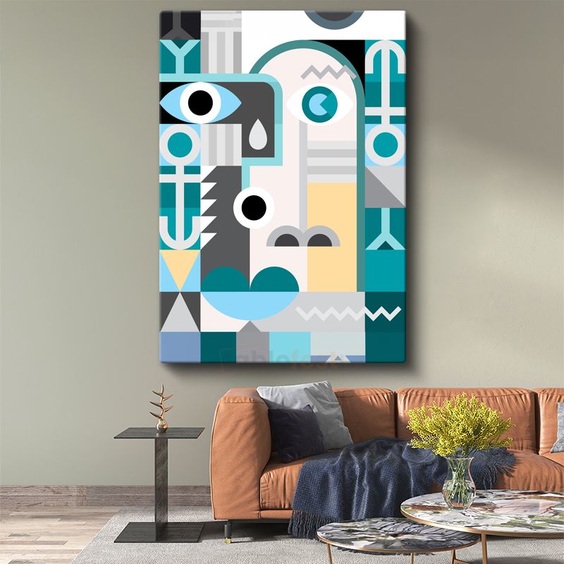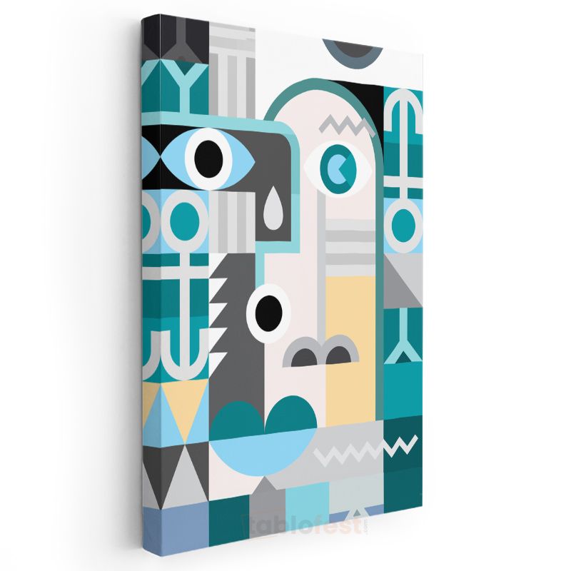 Geometrik Portre - Turkuaz ve Gri Tonlarında Modern Yüz Kanvas Tablo