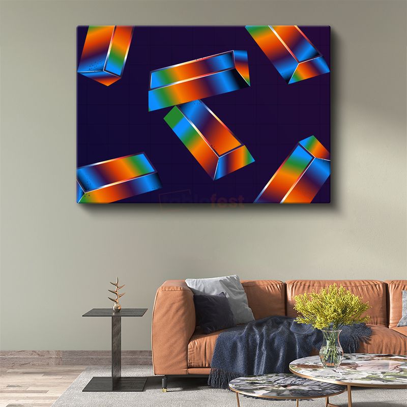 Geometrik Prizmalar - Gökkuşağı Renklerde 3D Soyut Kanvas Tablo