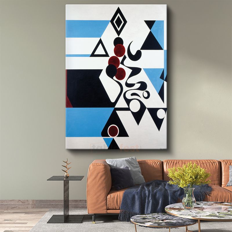 Geometrik Ritim - Siyah Beyaz Mavi Kontrast Kanvas Tablo