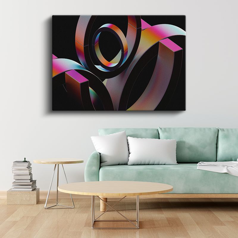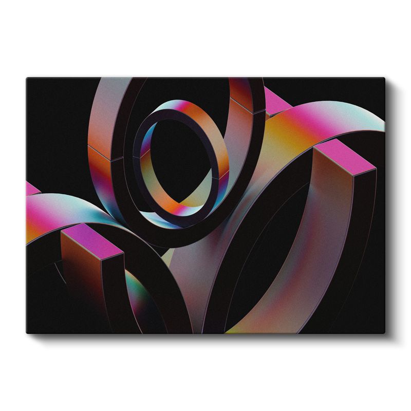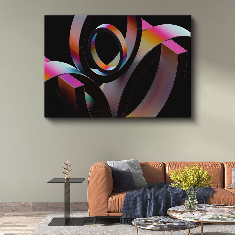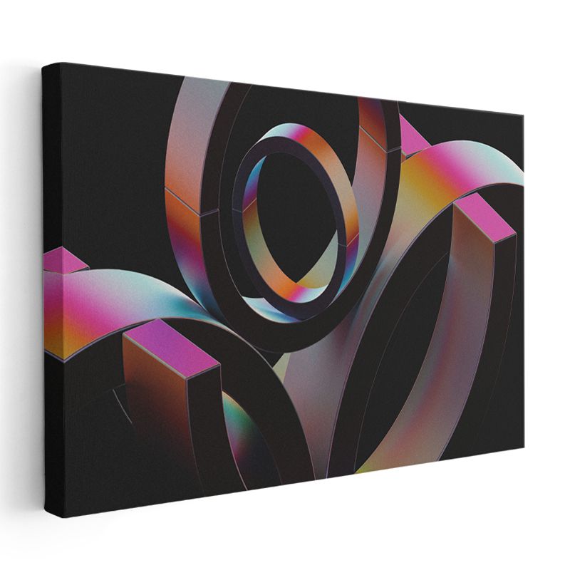 Geometrik Senfoni - Siyah Zeminde Renkli Halkalar Kanvas Tablo