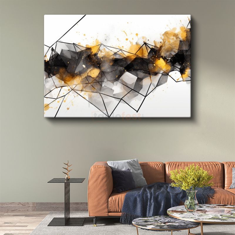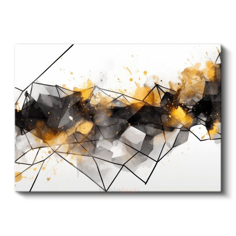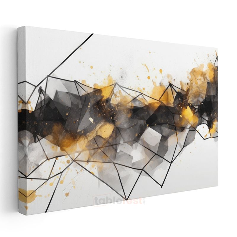 Geometrik Sıçrama - Siyah ve Altın Tonlarda Modern Çizgisel Kanvas Tablo