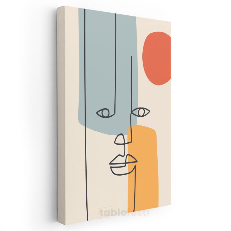 Geometrik Yüz - Modern Çizgisel Portre Kanvas Tablo