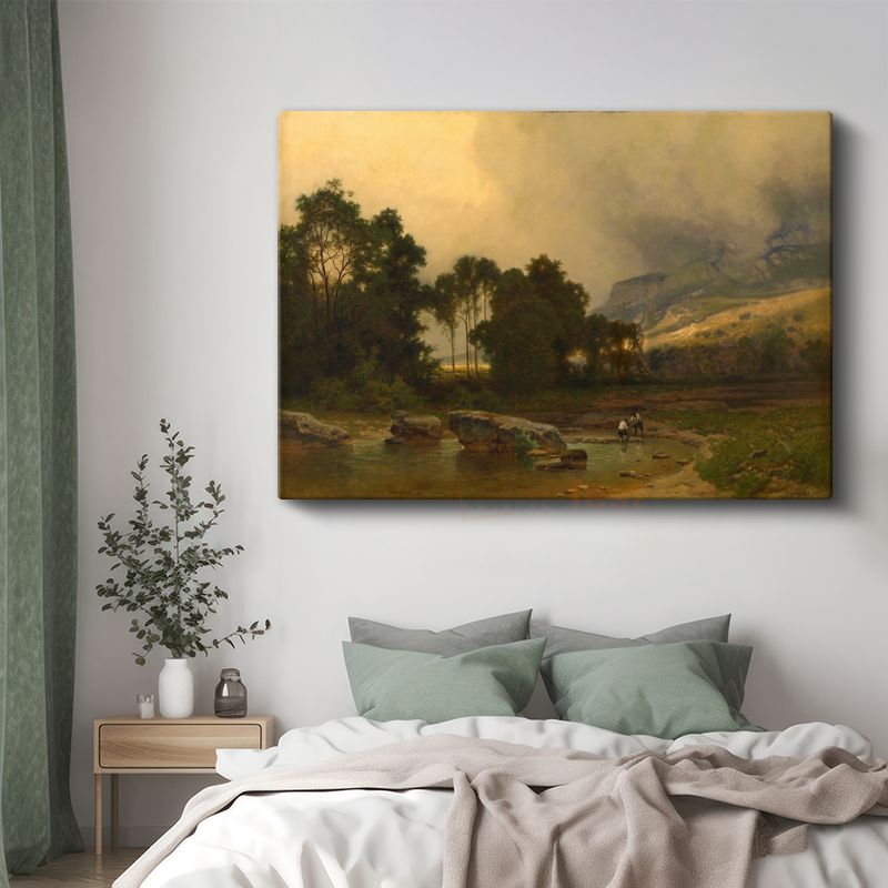 George Inness - Nehir Kenarı Manzarası Kanvas Tablo