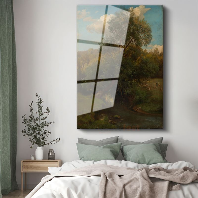 George Inness - Nehir Kenarında Ağaçlar Cam Tablo