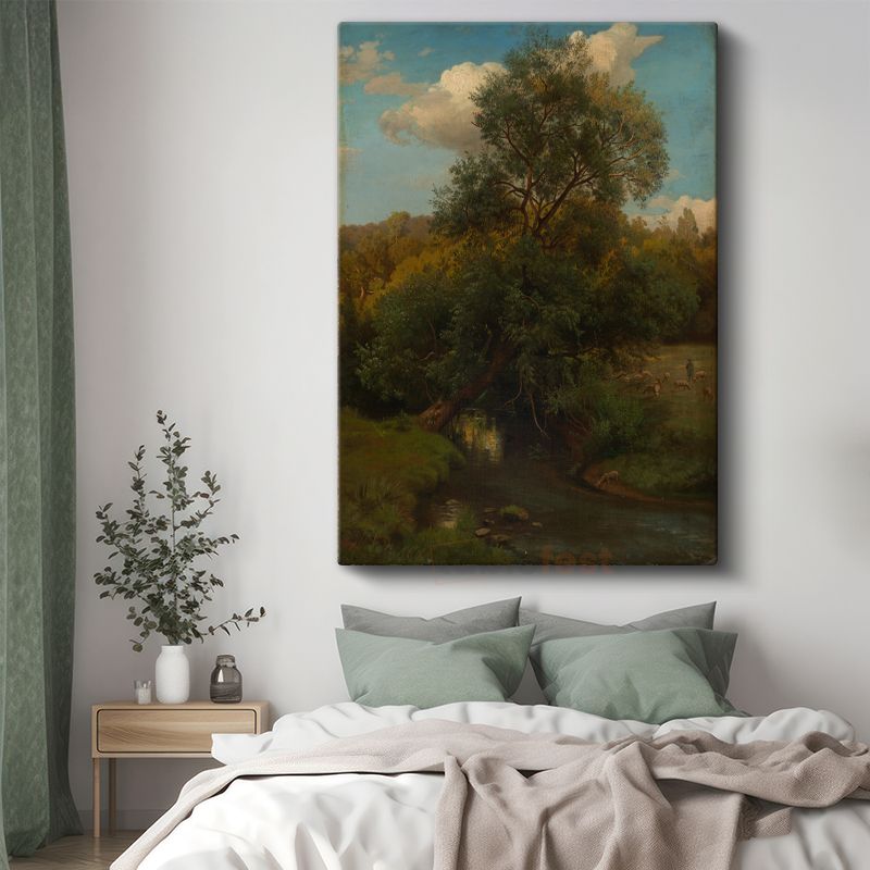 George Inness - Nehir Kenarında Ağaçlar Kanvas Tablo