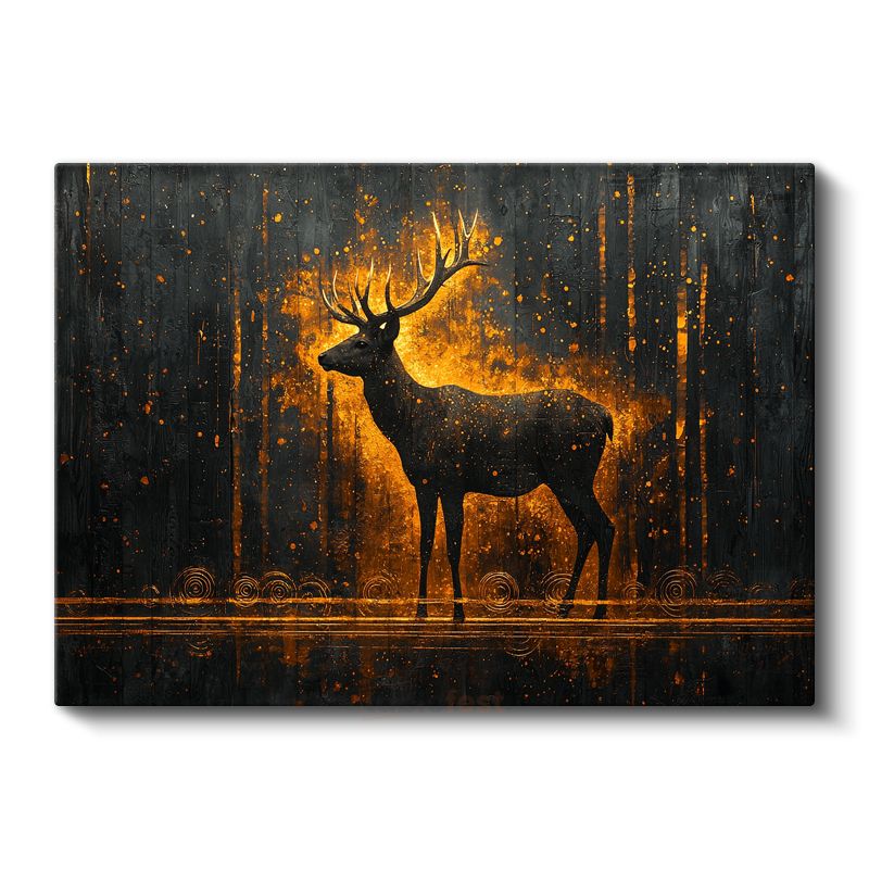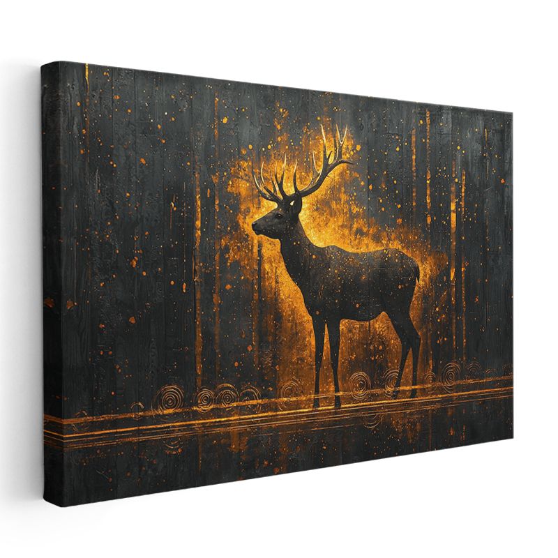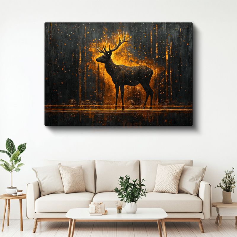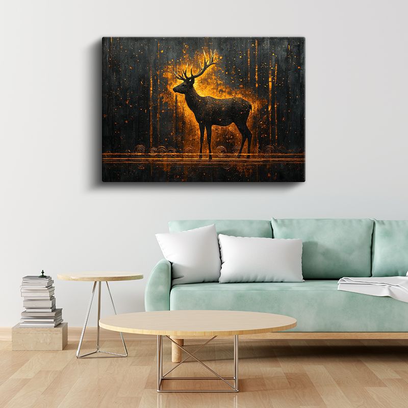 Geyik Silüeti - Altın Işıkta Parlayan Heybetli Duruş Kanvas Tablo