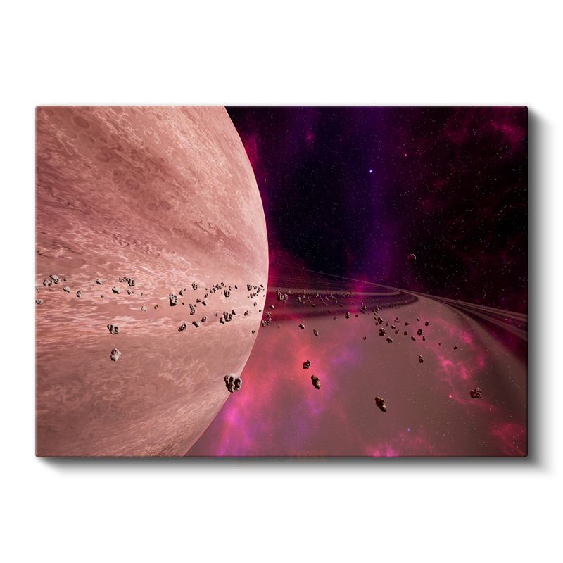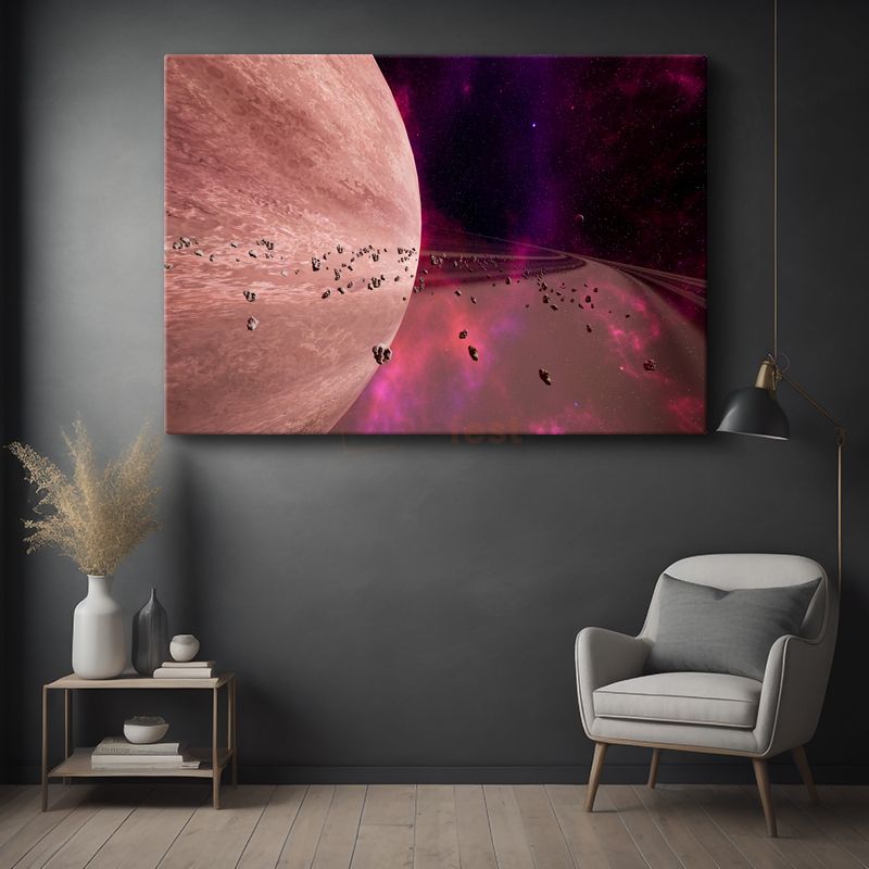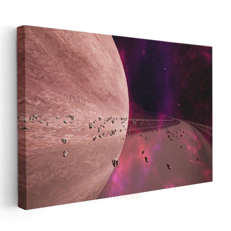 Gezegen Yörüngesi - Pembe Tonlarda Kozmik Manzara Kanvas Tablo