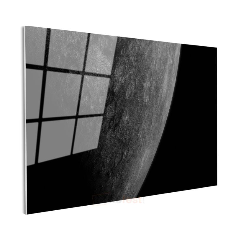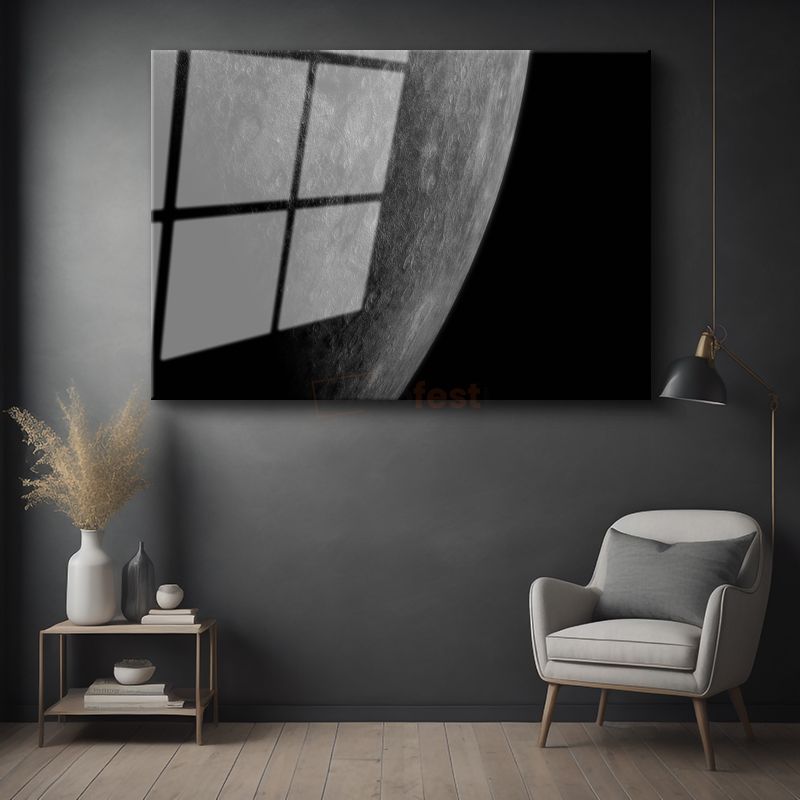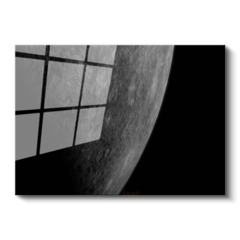 Gezegen Yüzeyi - Kraterli Kozmik Manzara Cam Tablo