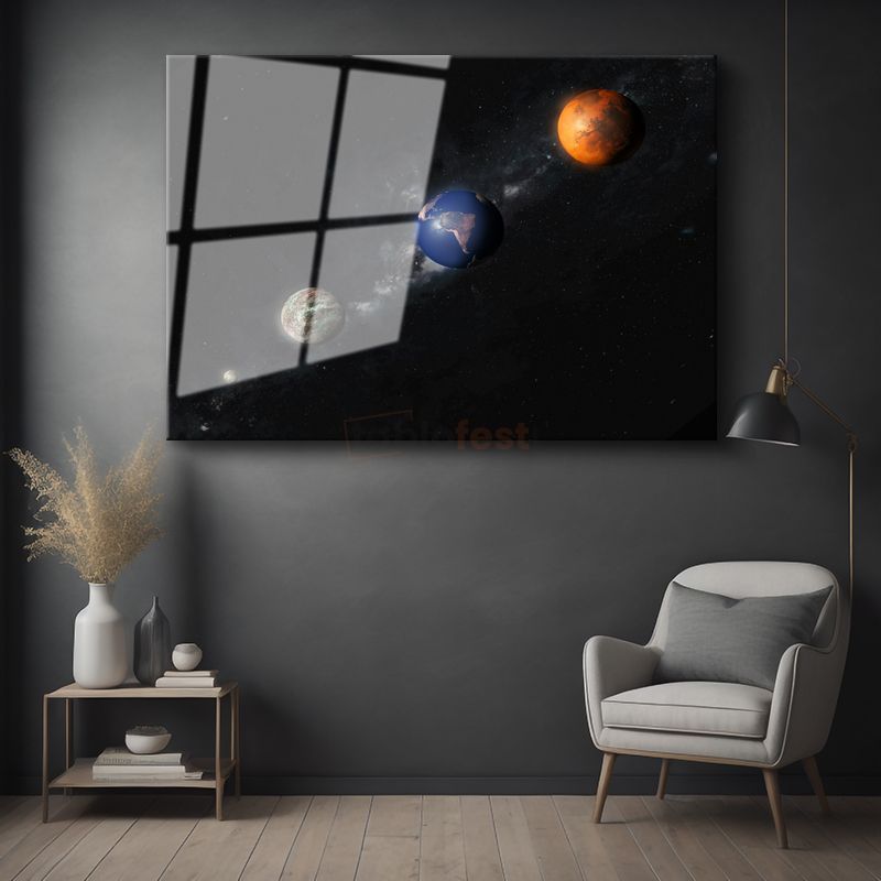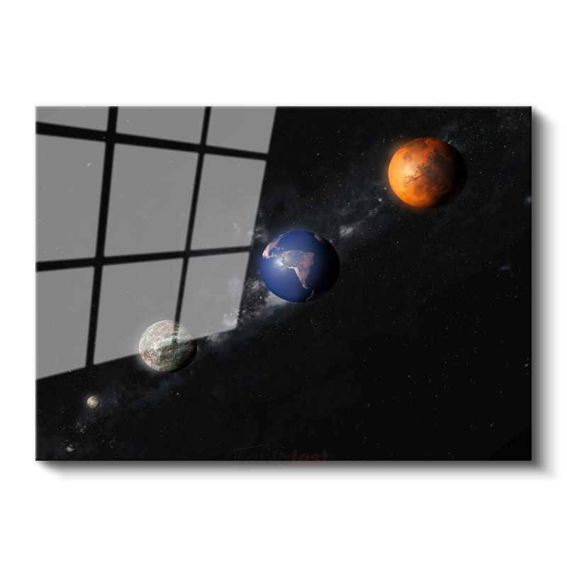 Gezegenler - Güneş Sistemi Manzarası Cam Tablo