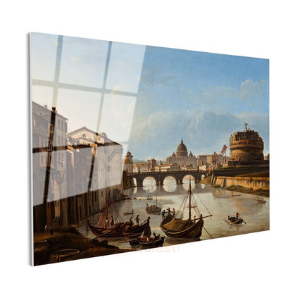 Giovanni Antonio Canal (Canaletto) - Roma Tiber Nehri Manzarası Cam Tablo