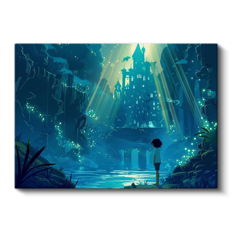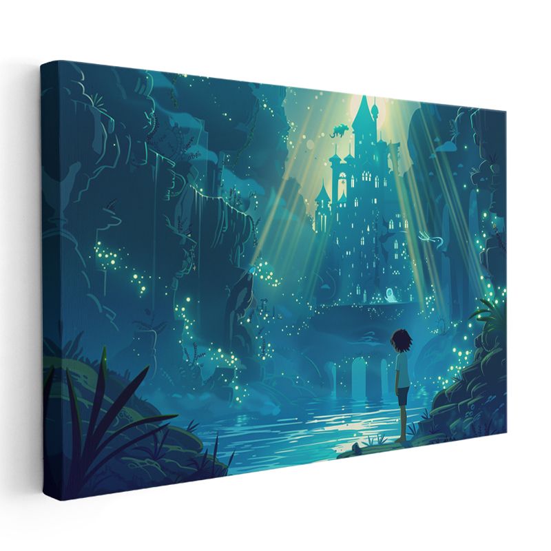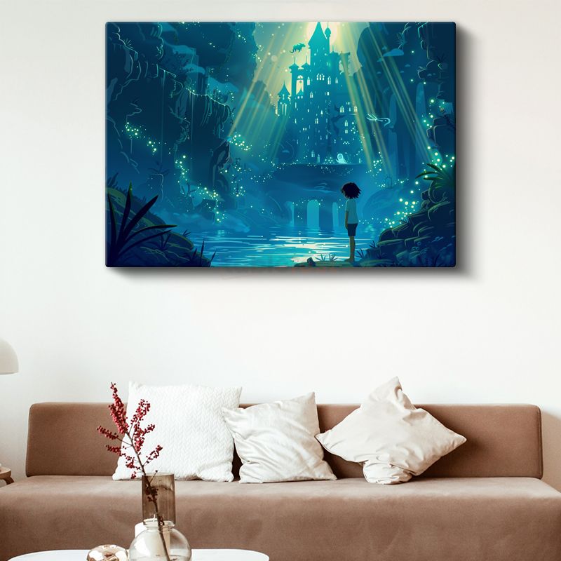Gizemli Kale - Yeşil Işıklar Anime Kanvas Tablo