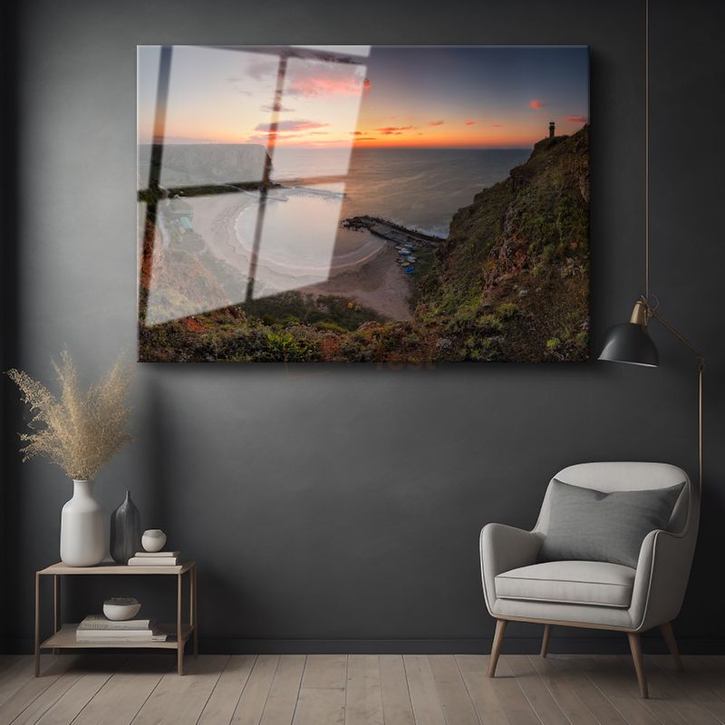 Gizli Koy - Falezler Arasında Günbatımı Cam Tablo