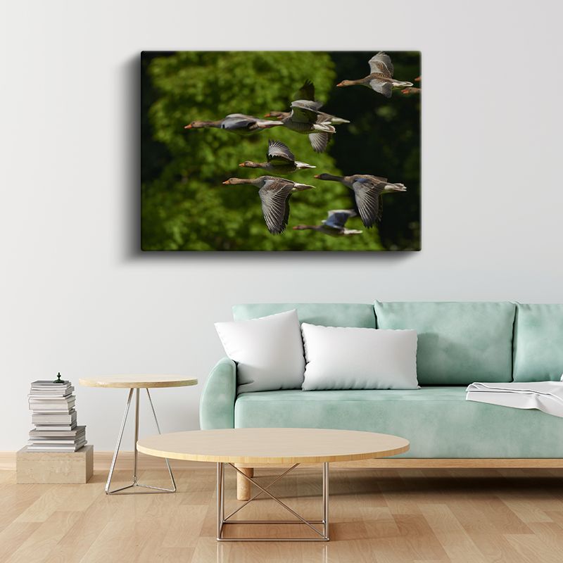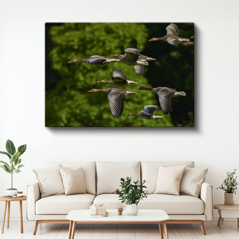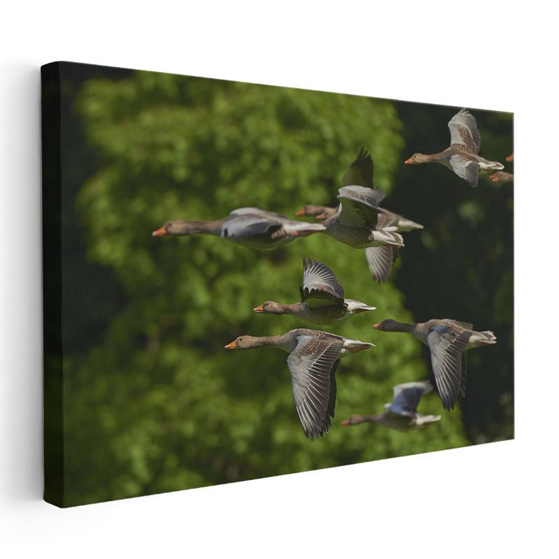 Göçmen Kazlar - Uyumlu Uçuş Formasyonu Kanvas Tablo