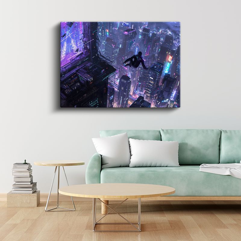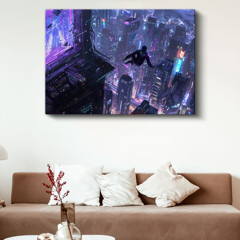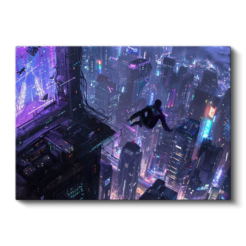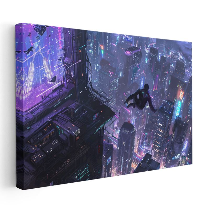 Gökdelen Atlayışı - Mor Şehir Anime Kanvas Tablo