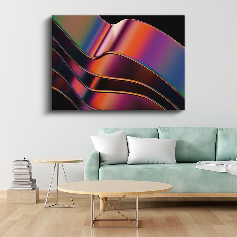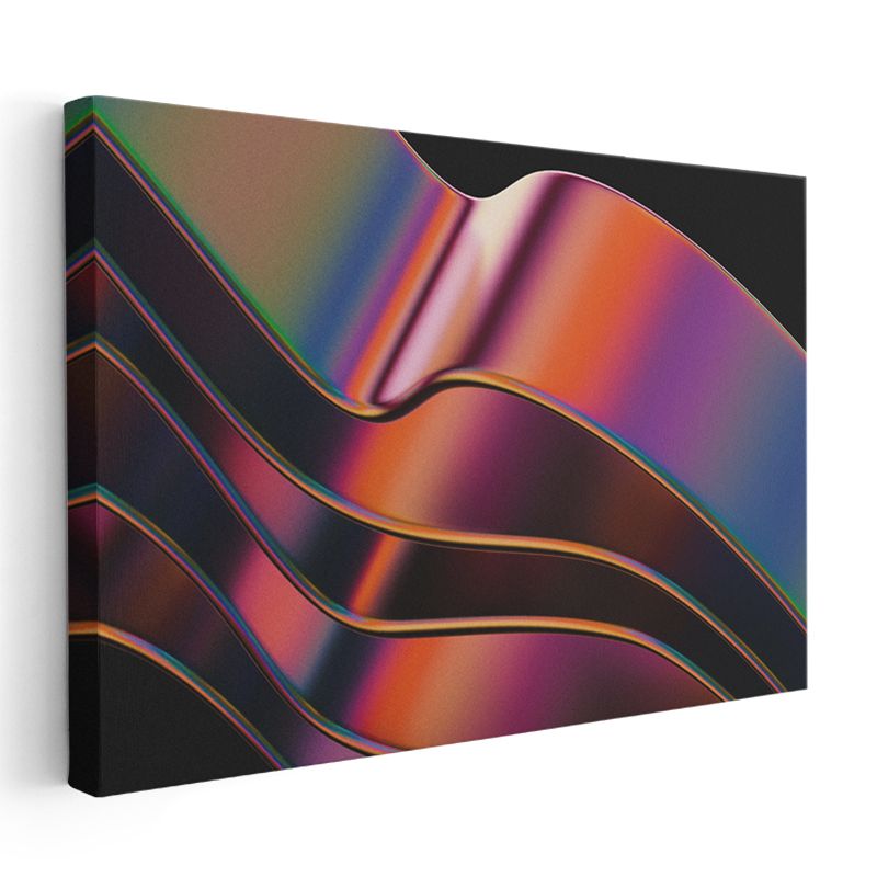 Gökkuşağı Dalgalar - Metalik Şeritler Kanvas Tablo
