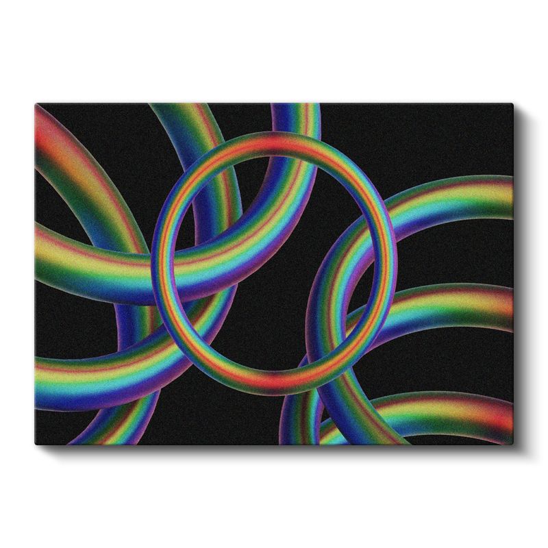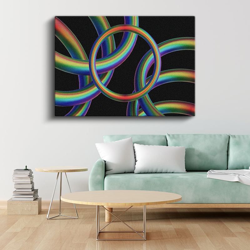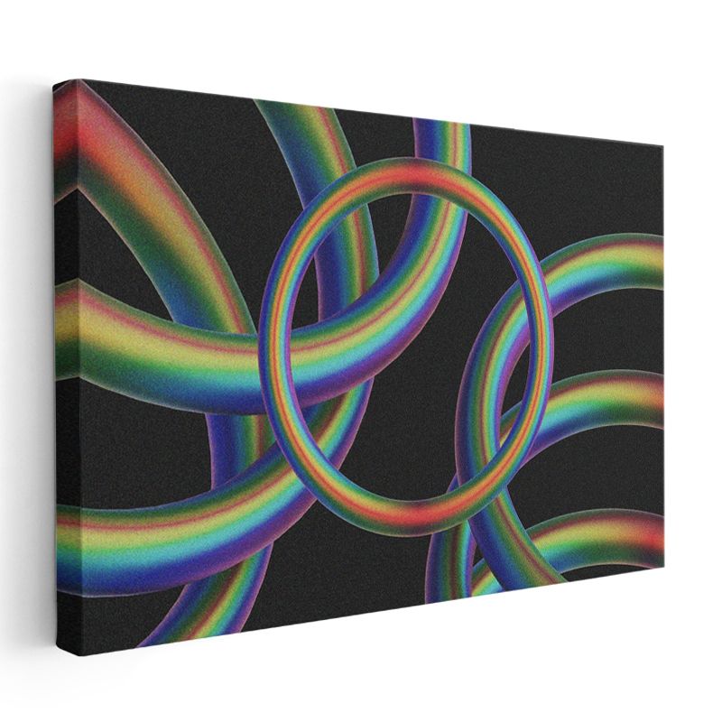 Gökkuşağı Halkalar - Siyah Zemin Üzerinde Geometrik Desen Kanvas Tablo