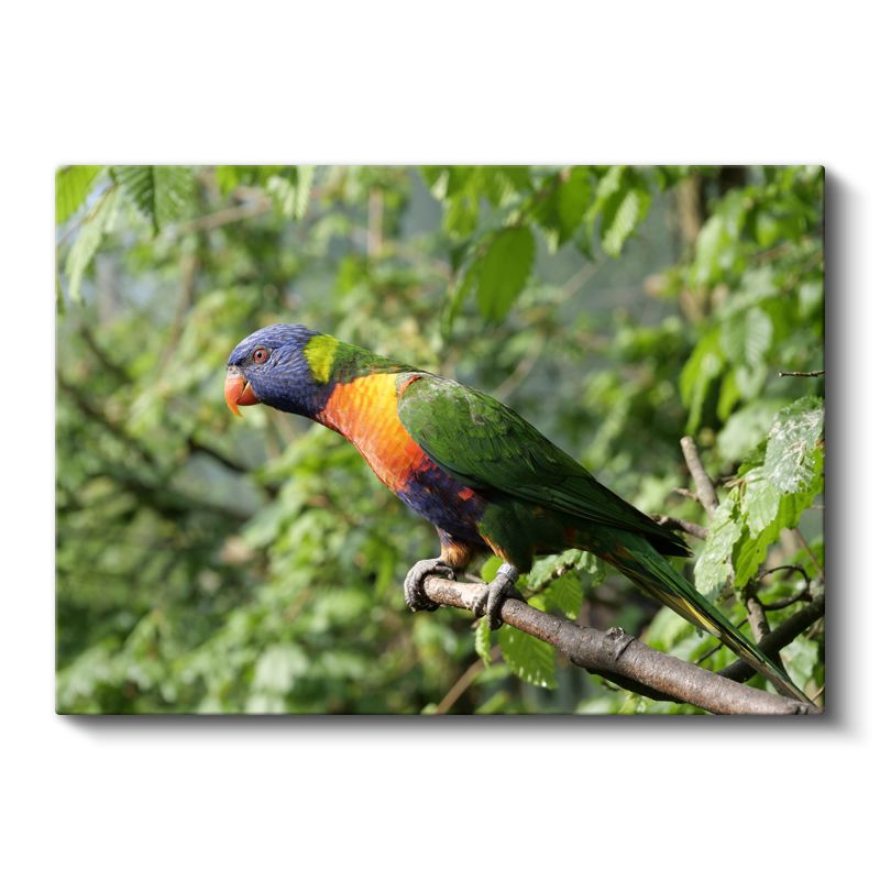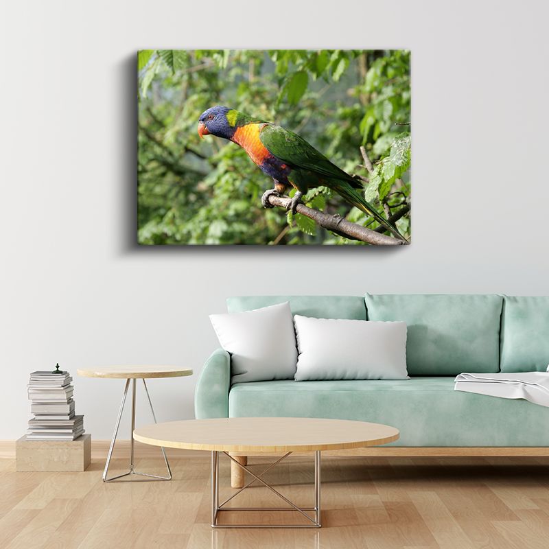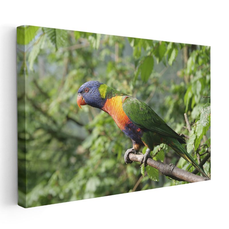 Gökkuşağı Papağanı - Renkli Tüyleriyle Dal Üzerinde Kanvas Tablo