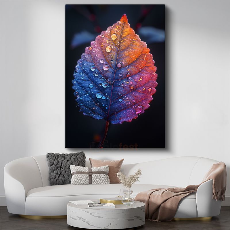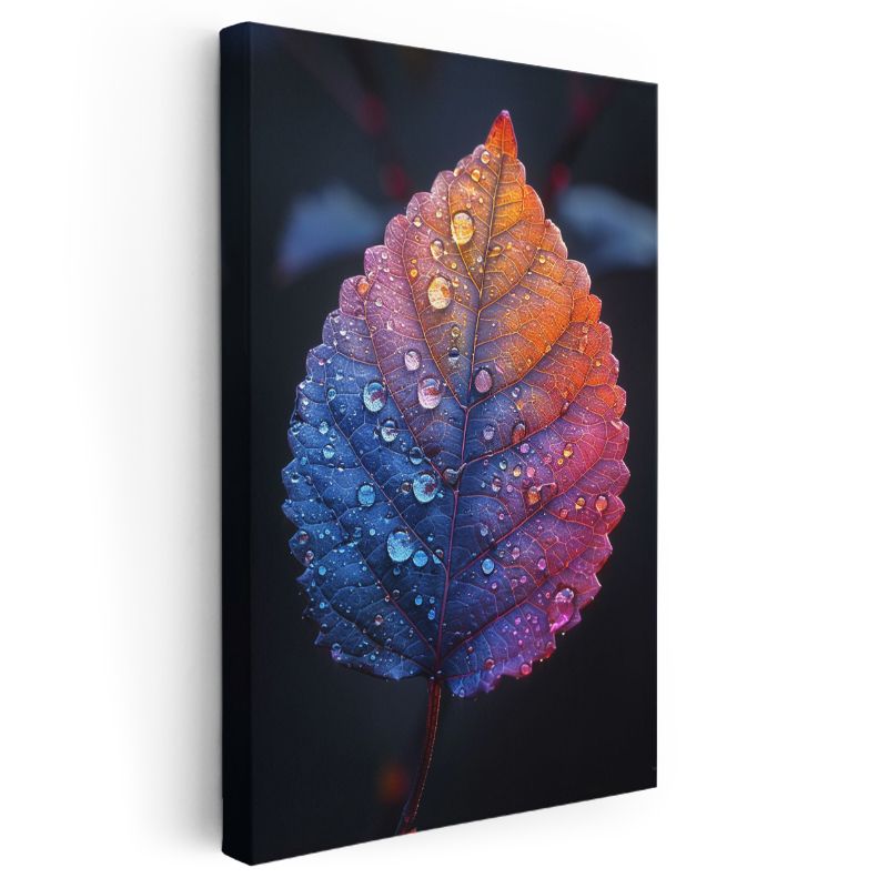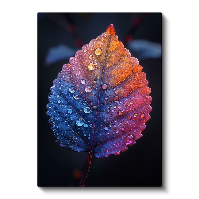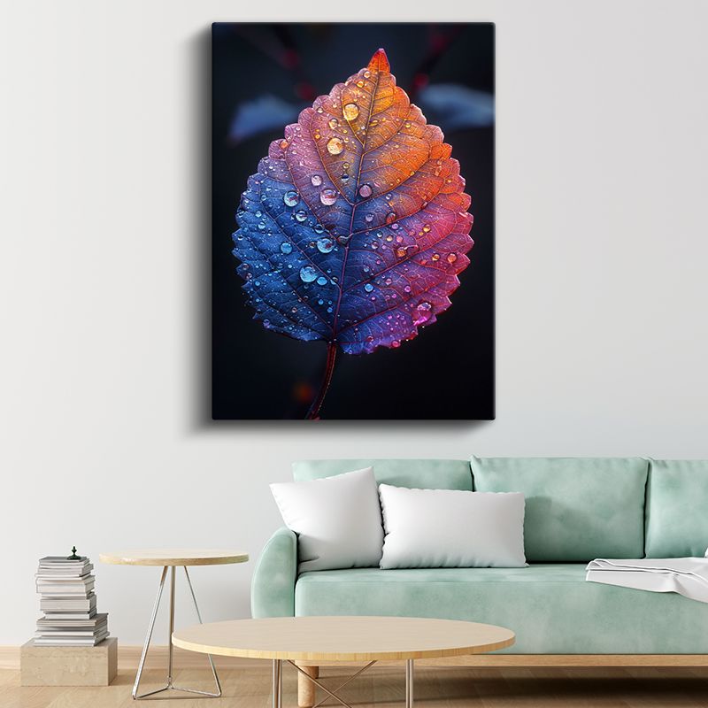 Gökkuşağı Yaprak Portresi - Çiy Damlalı Makro Kanvas Tablo
