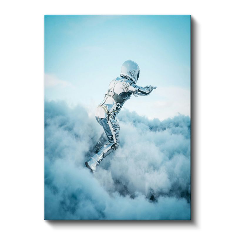 Göksel Yolcu - Bulutlar Üzerinde Süzülen Metalik Varlık Kanvas Tablo
