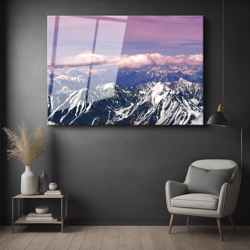 Gökyüzü Altında - Karlı Dağ Silsileleri Cam Tablo