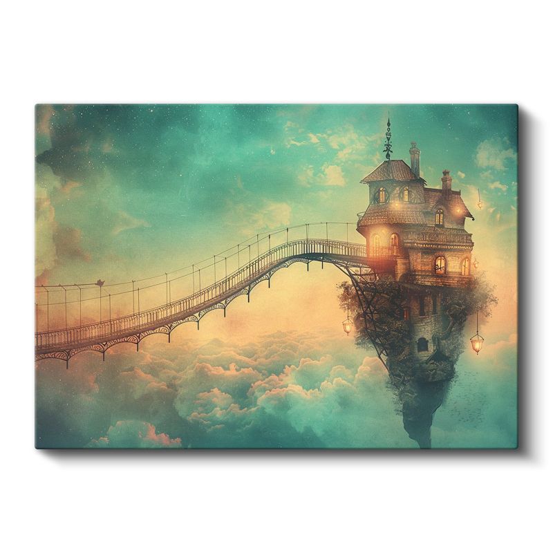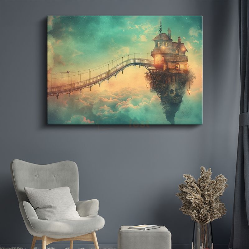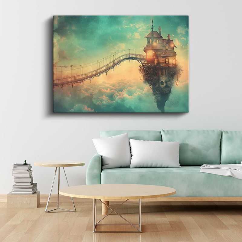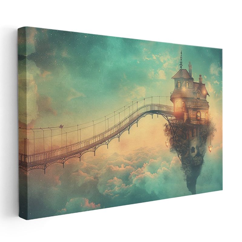 Gökyüzü Evi - Bulutlar Üzerindeki Köprülü Malikâne Kanvas Tablo