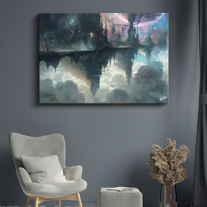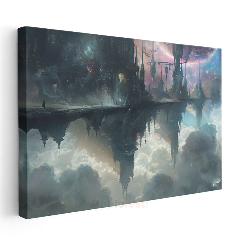 Gökyüzü Krallığı - Bulutların Üzerinde Asılı Duran Fantastik Şehir Kanvas Tablo
