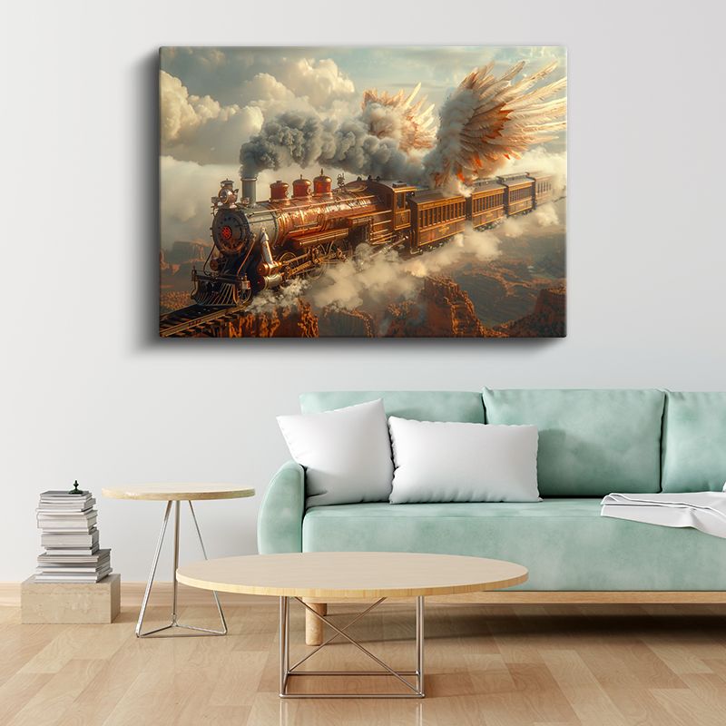 Gökyüzü Treni - Bulutlar Arasında Kanat Çırpan Yolculuk Kanvas Tablo