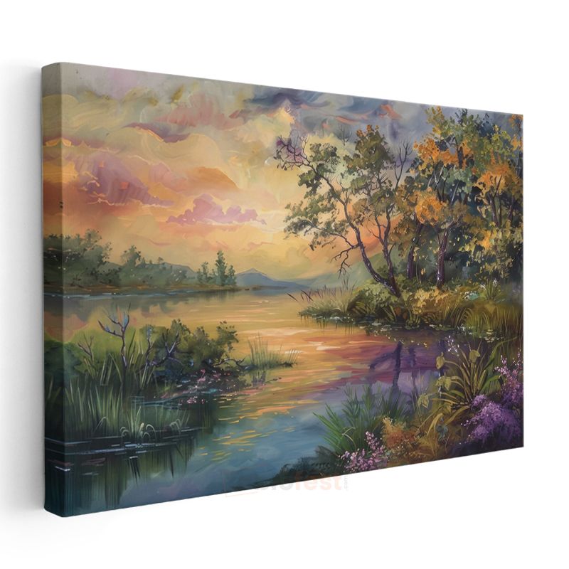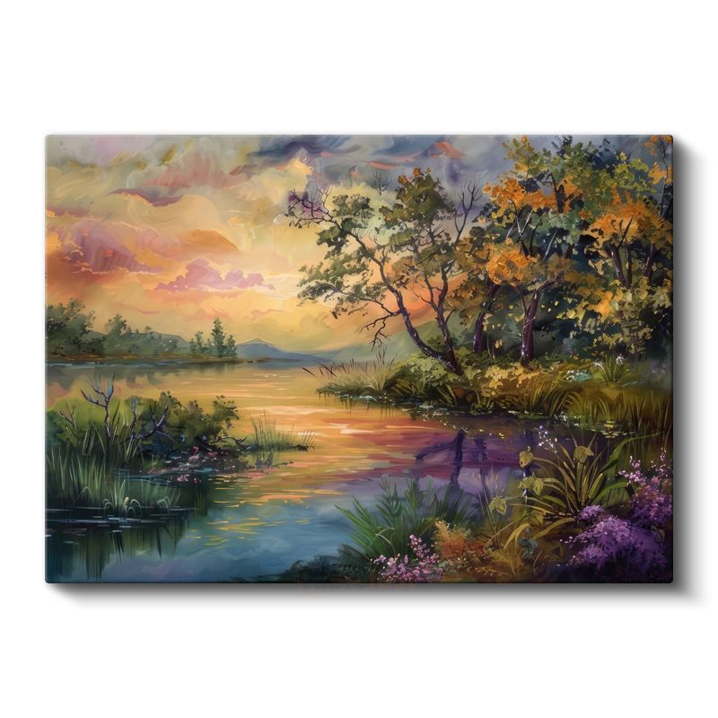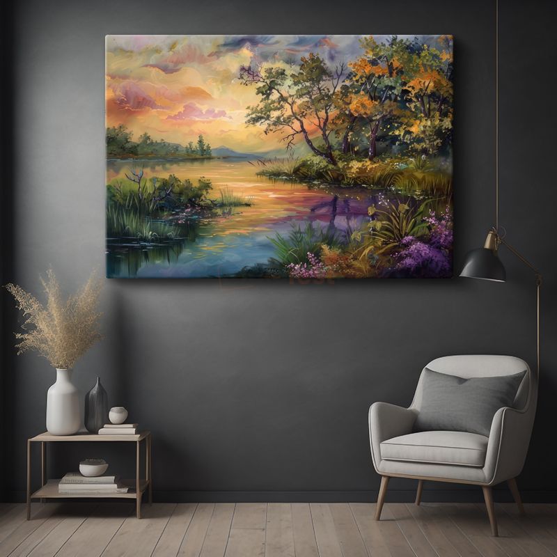 Göl Kenarı - Sonbahar Renkleriyle Bezeli Manzara Kanvas Tablo