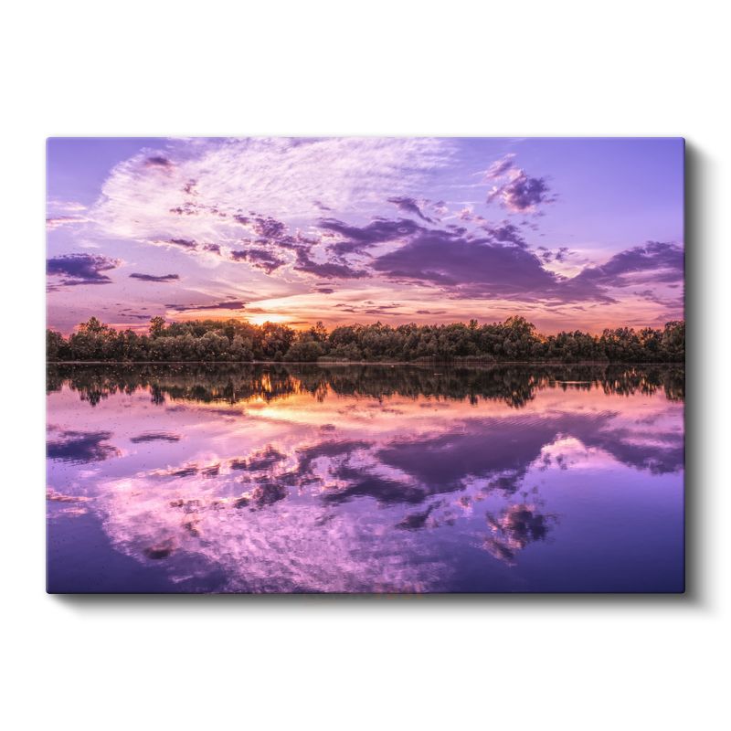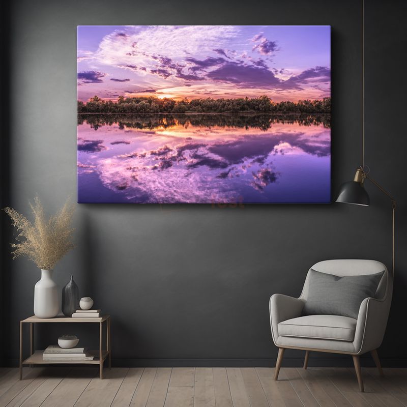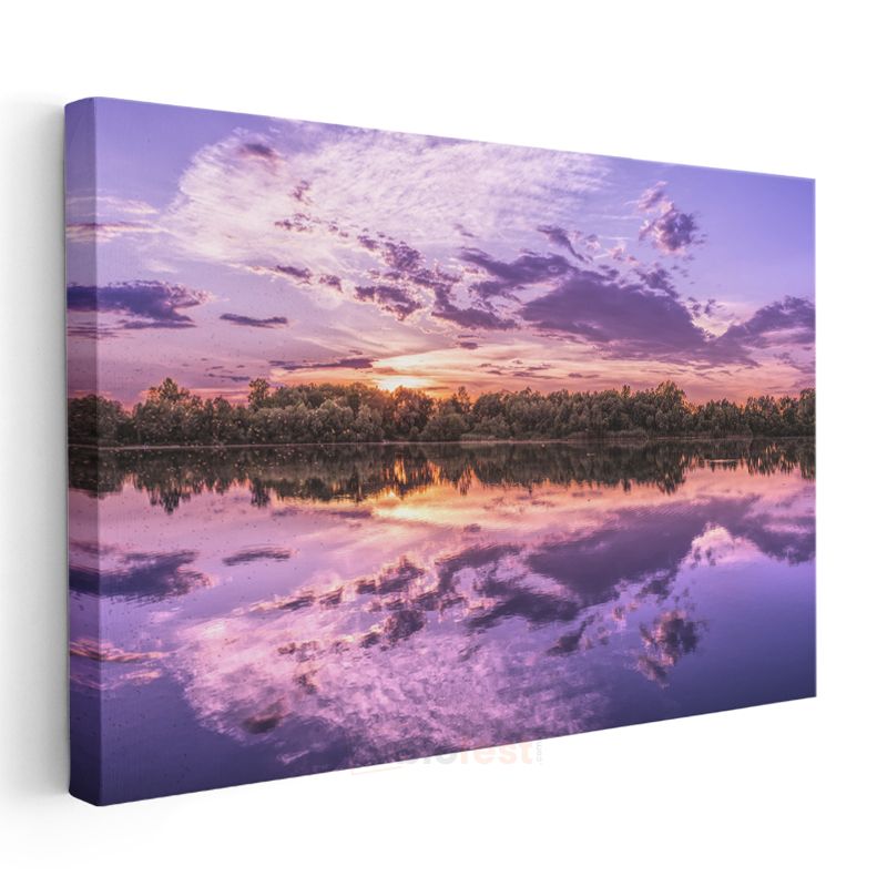 Göl Yansıması - Mor Tonlarında Büyüleyici Gün Batımı Kanvas Tablo