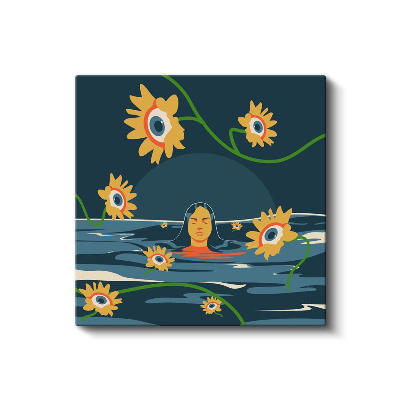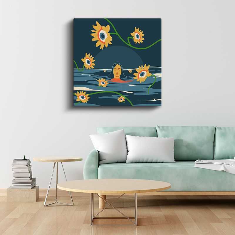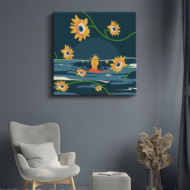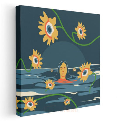 Göz Çiçekleri - Suda Yüzen Figürün Rüyası Kanvas Tablo