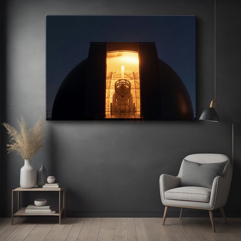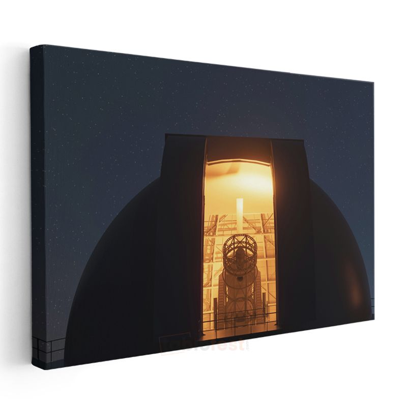 Gözlemevi - Yıldızlı Gece Gökyüzü Altında Işıldayan Kubbe Kanvas Tablo