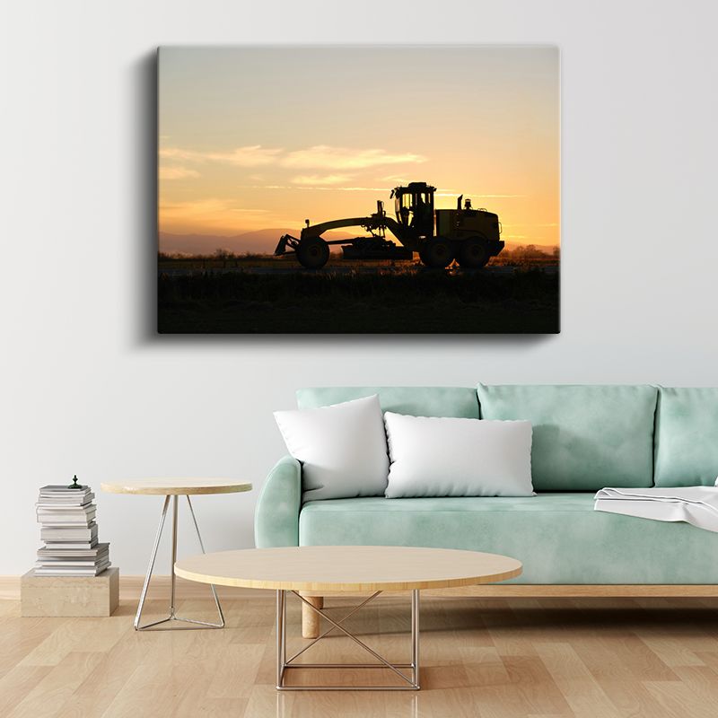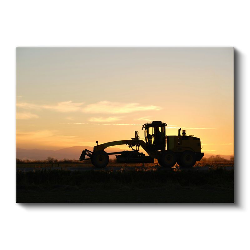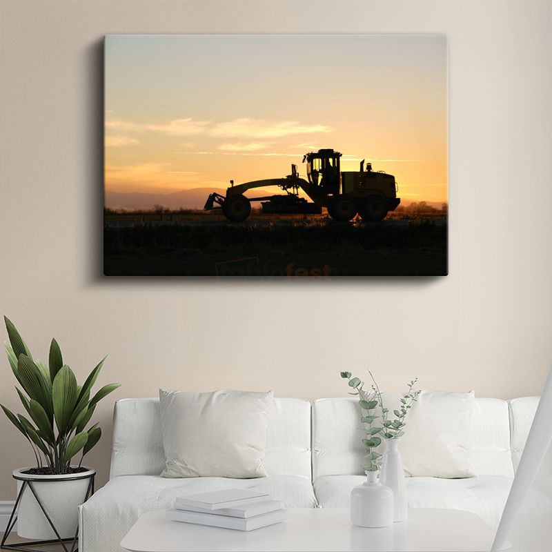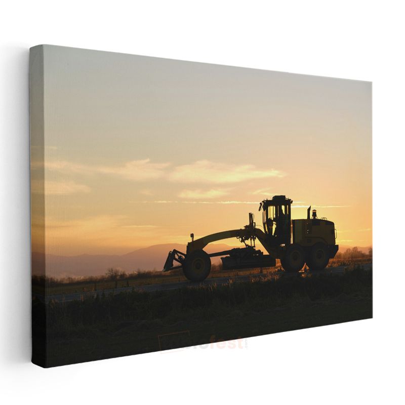 Greyder Silüeti - Gün Batımında İş Makinesi Kanvas Tablo