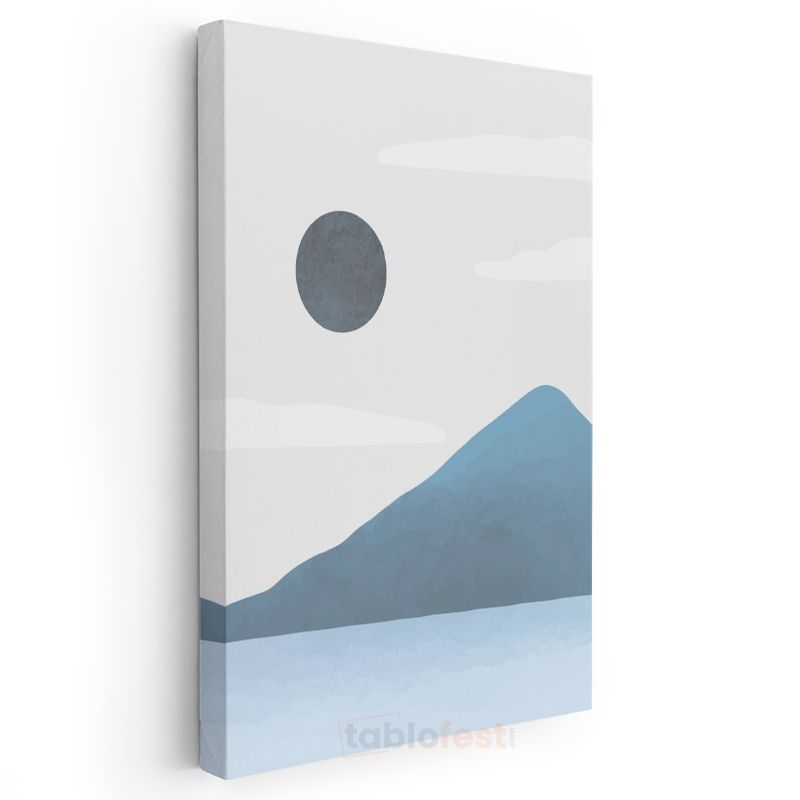 Gri Gezegen - Mavi Dağ Manzarası Minimalist Kanvas Tablo