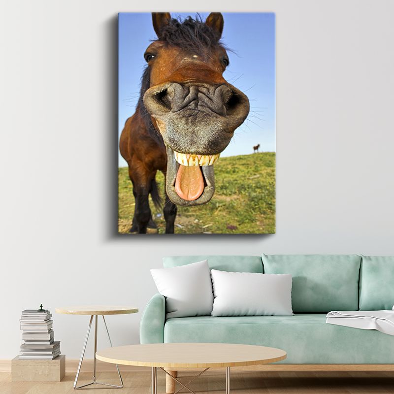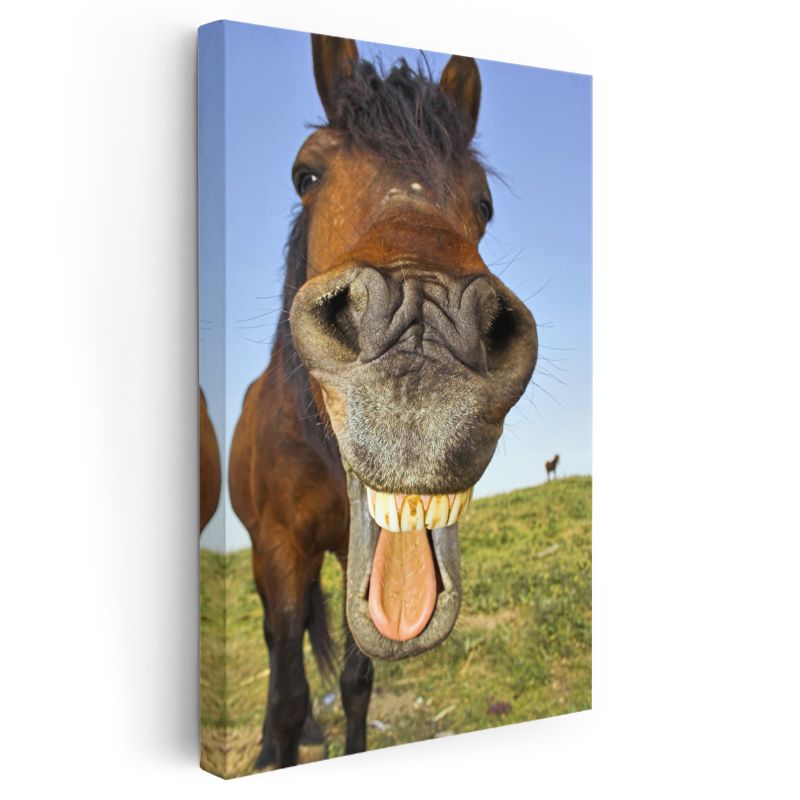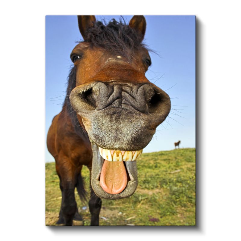 Gülen At - Neşeli İfadeli Komik Portre Kanvas Tablo
