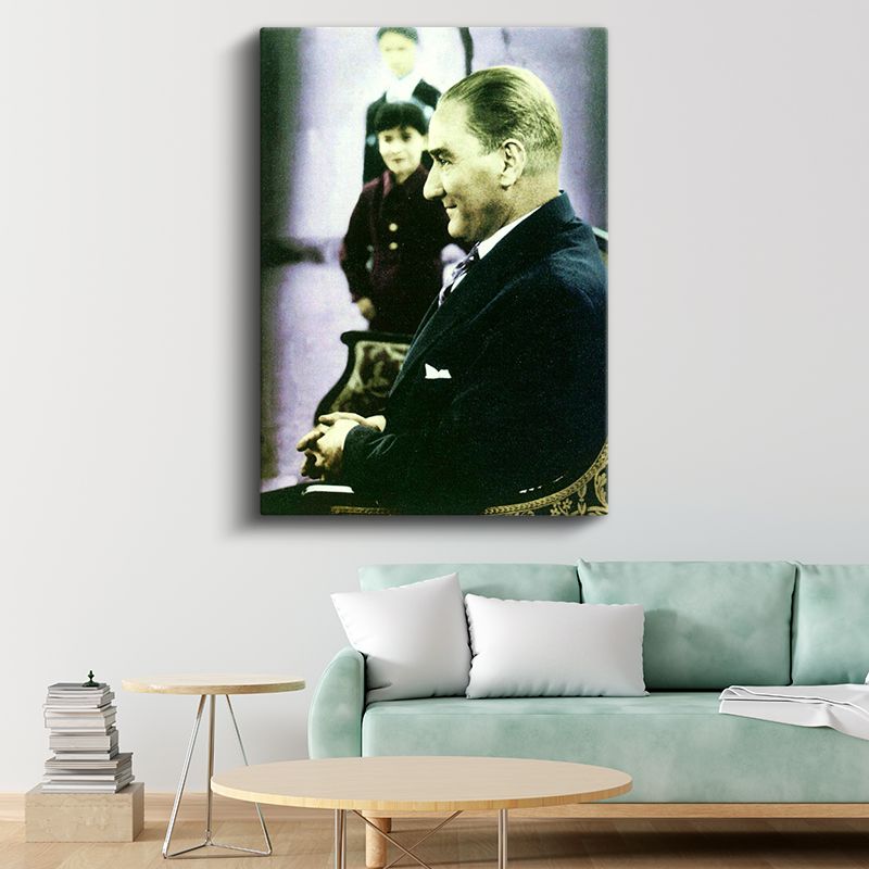 Gülümseyen Atatürk - Çocuklarla Anı Kanvas Tablo