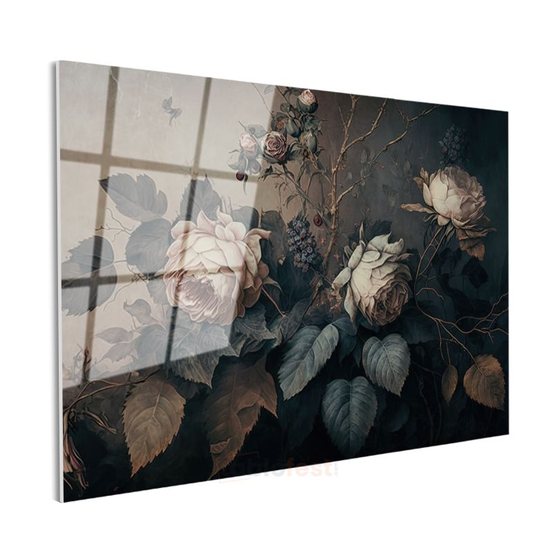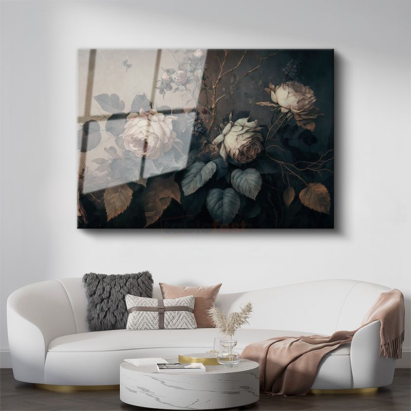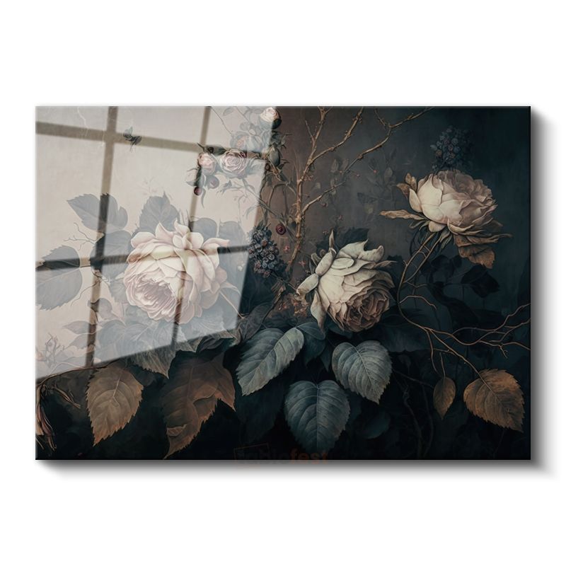 Gümüş Altın Buket - Zarif Çiçek Aranjmanı Cam Tablo