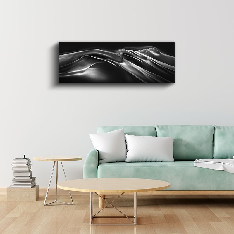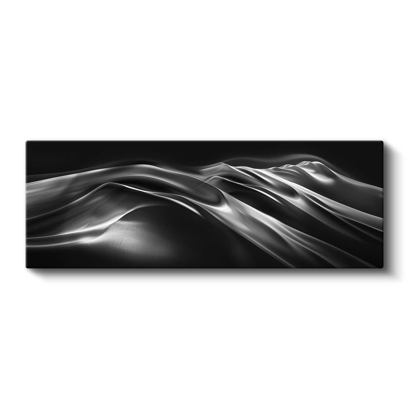 Gümüş Dalgalar - Siyah Minimalist Akışkan Form Kanvas Tablo