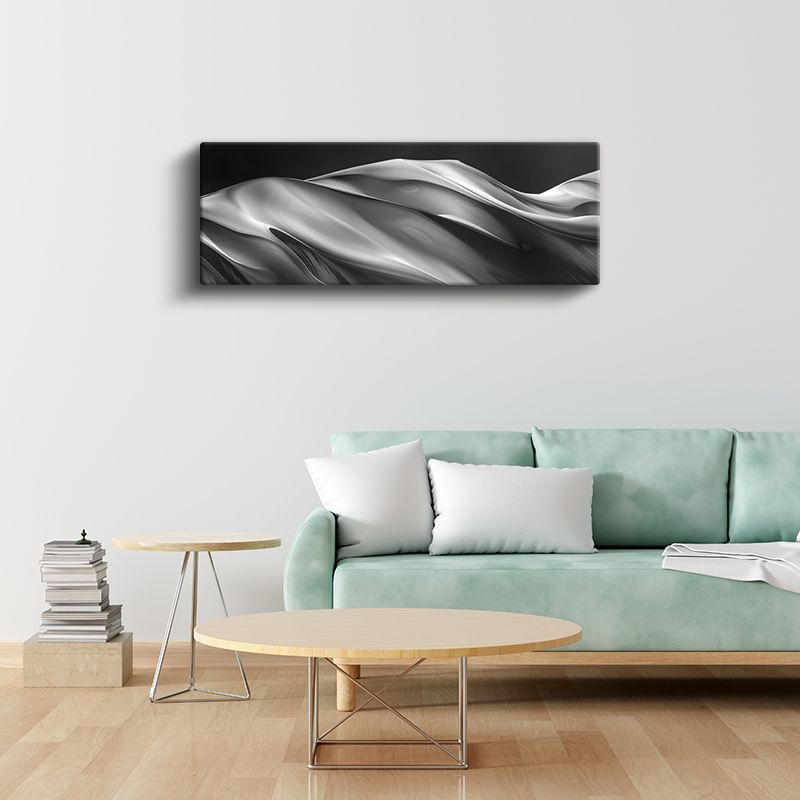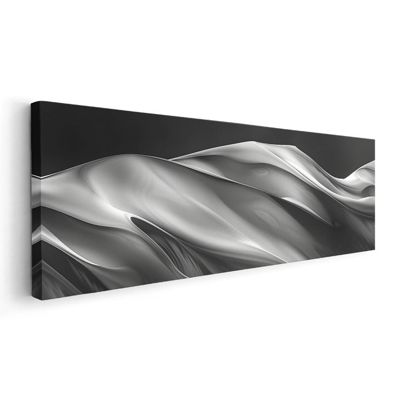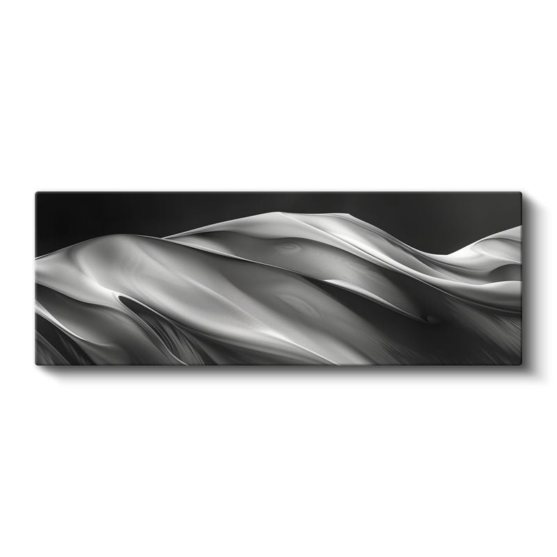 Gümüş Dalgalar - Siyah Zeminde Akışkan Formlar Kanvas Tablo
