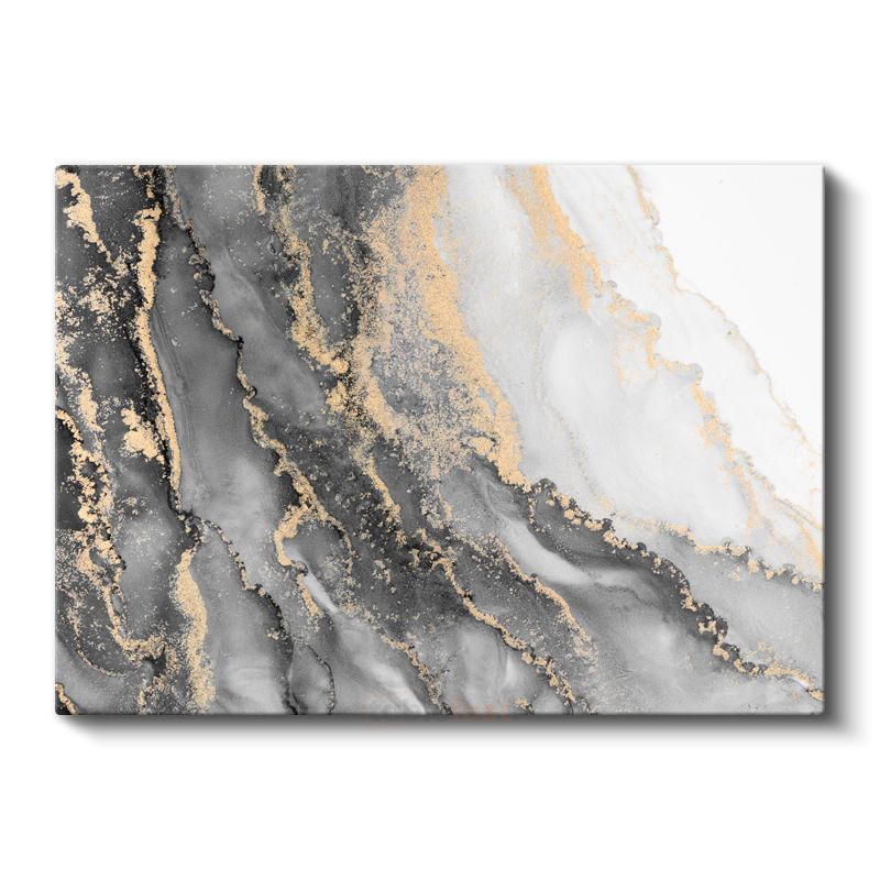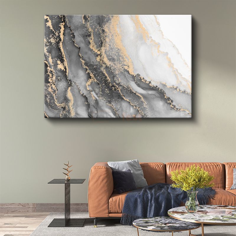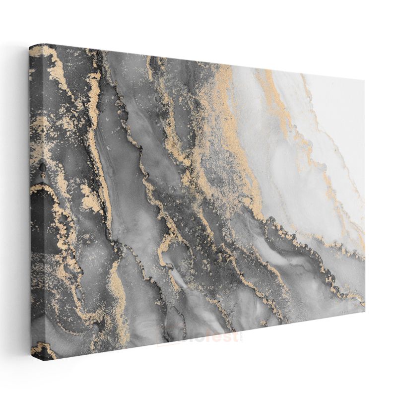 Gümüş Damarlar - Altın Detaylı Soyut Mermer Kanvas Tablo