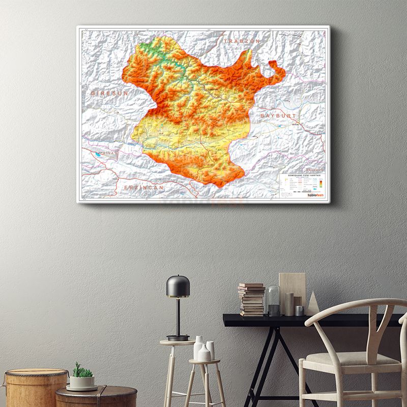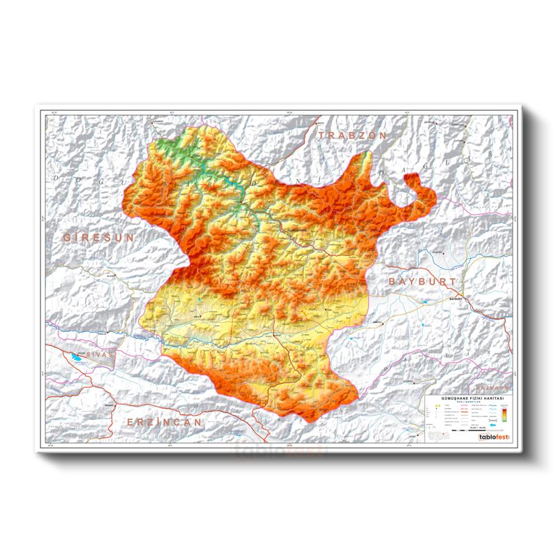 Gümüşhane - Fiziki Haritası Kanvas Tablo