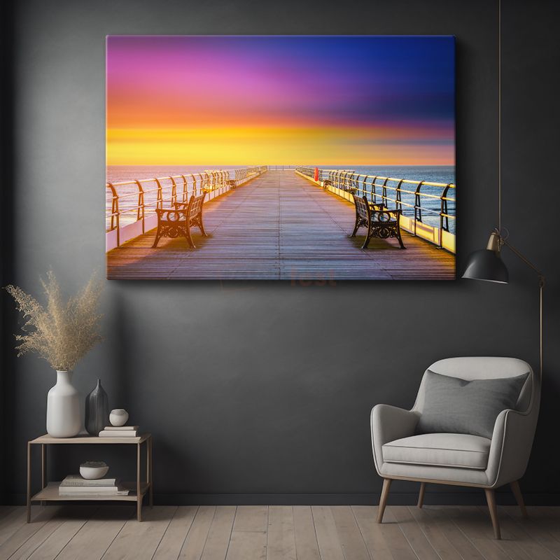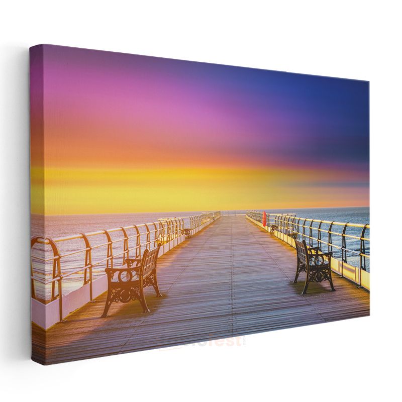 Gün Batımı İskelesi - Renkli Gökyüzü Altında Deniz Manzarası Kanvas Tablo