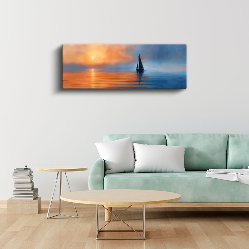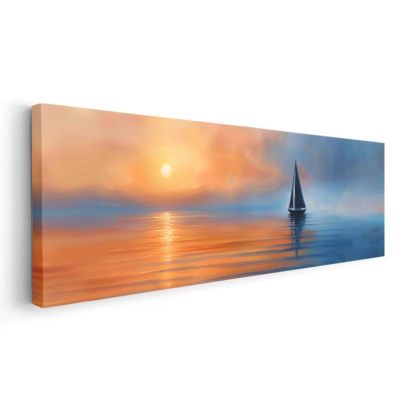 Gün Batımı - Sakin Denizde Yalnız Yelkenli Kanvas Tablo