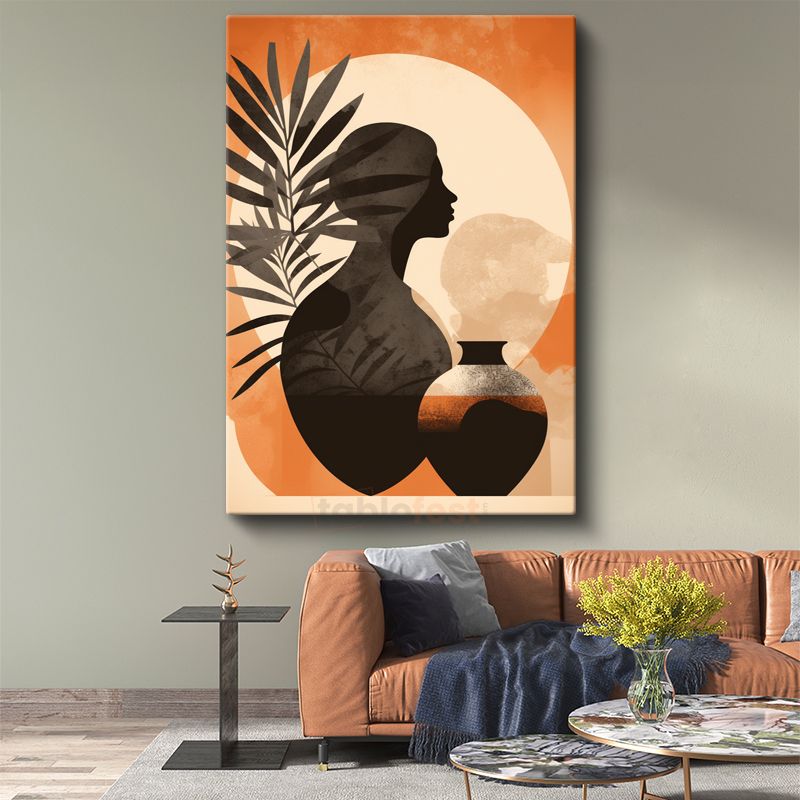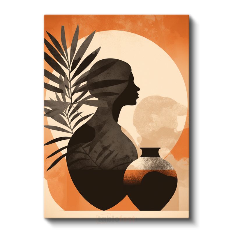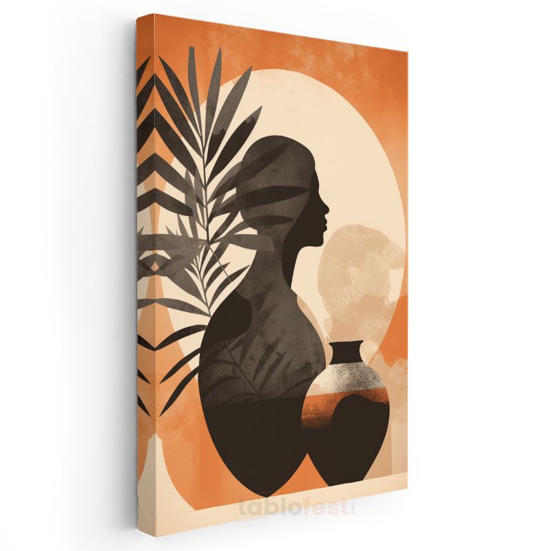Gün Batımı Silueti - Minimalist Kadın Profili Kanvas Tablo