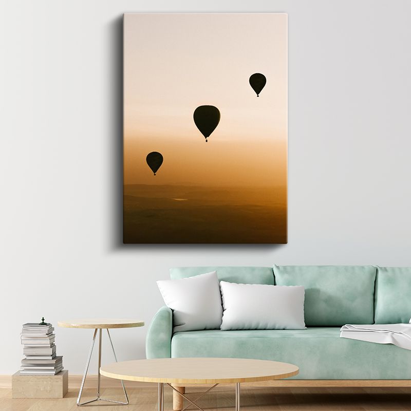 Gün Batımı Yolculuğu - Gökyüzünde Süzülen Balonlar Kanvas Tablo